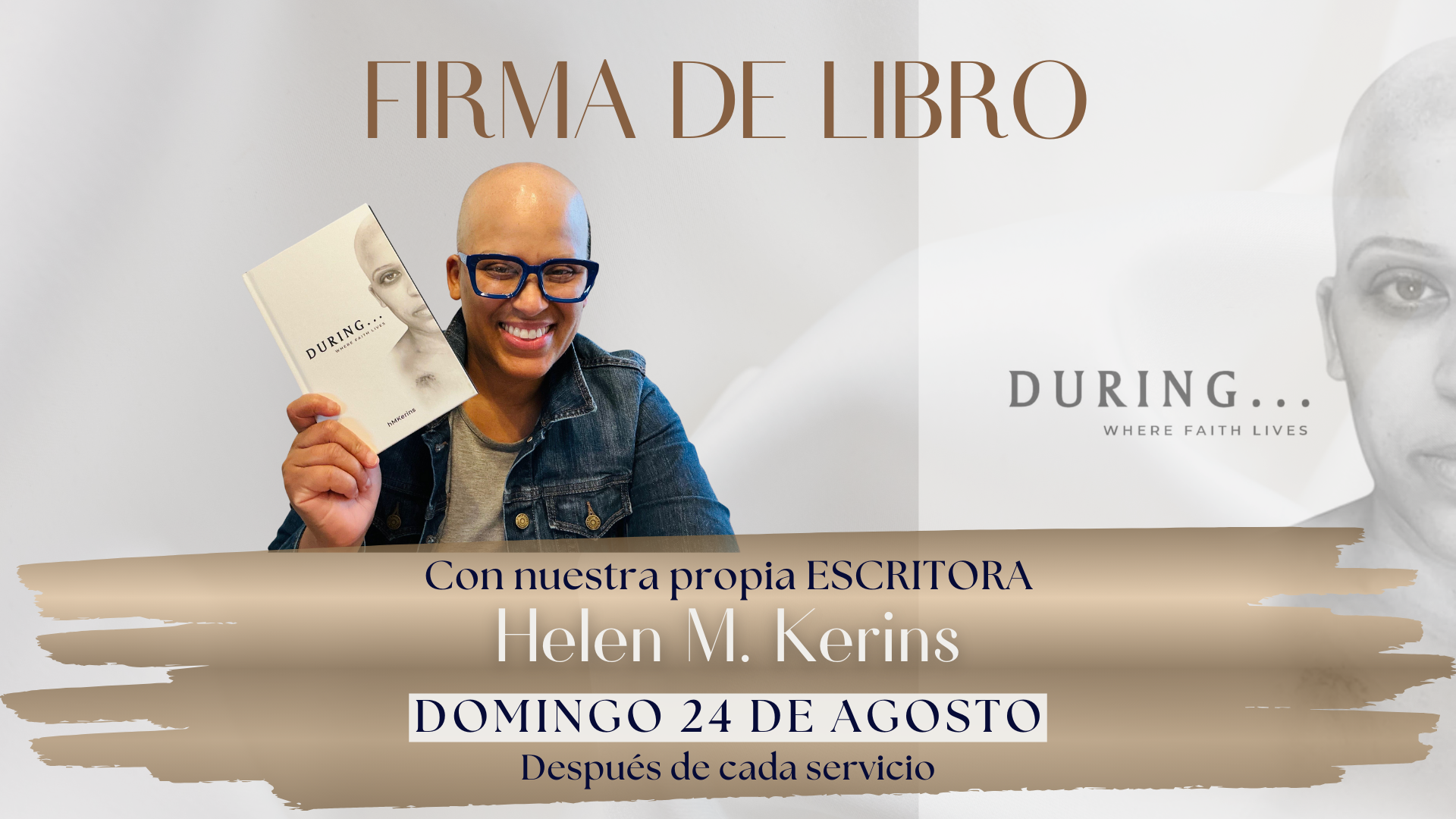 Este próximo domingo, la autora Helen M. Kerins ofrecerá una sesión de firma de libros. Su libro en inglés se titula “During… Where faith lives” (“Durante… Donde vive la fe”).