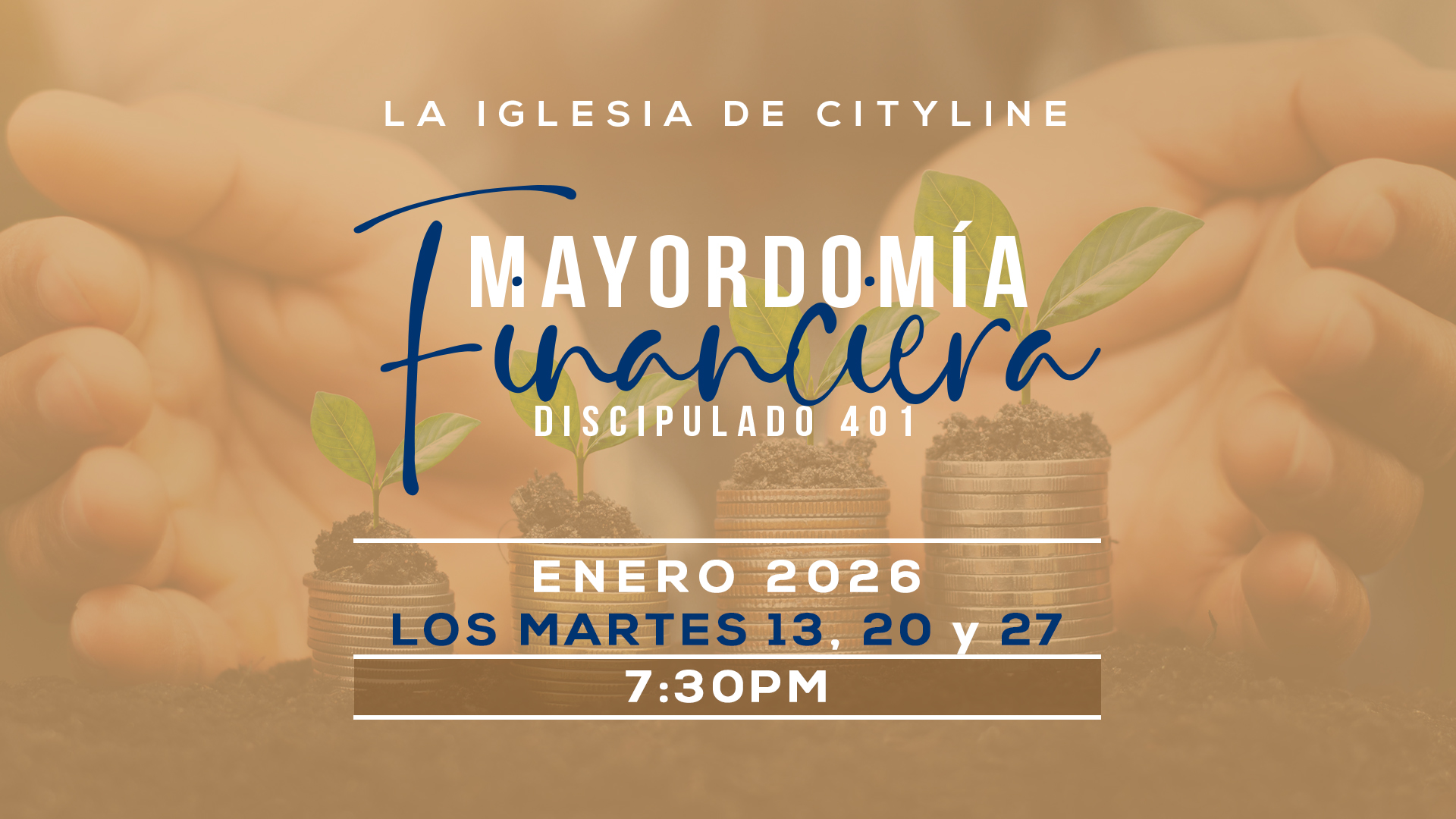 Únase a nosotros los próximos martes 13, 20 y 27 de enero para nuestra serie de Discipulado 401 en Administración de Finanzas. ¡Comparta este evento con un amigo!