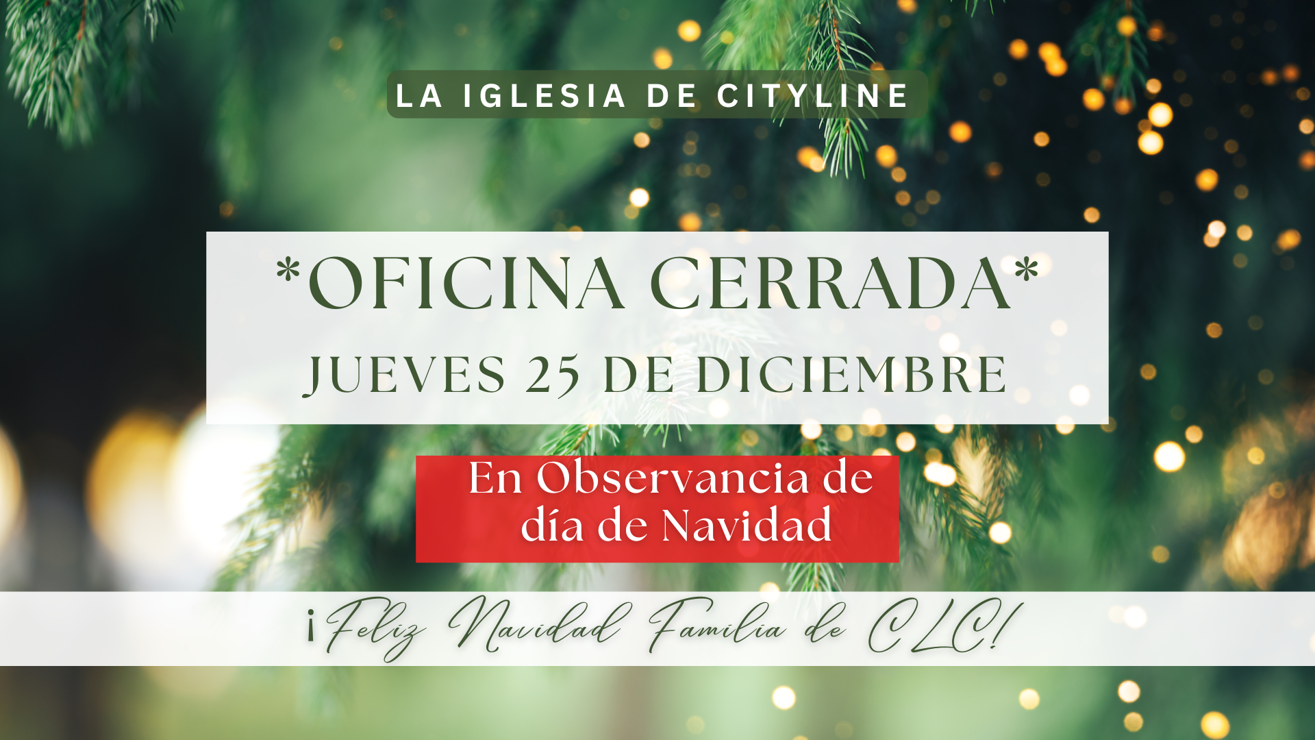 Publicado en13 diciembre, 2025 Publicado por: Staff Categorías:Noticias En observación al día de Navidad, la Oficina de CLC estará cerrada el JUEVES 25 de diciembre.
