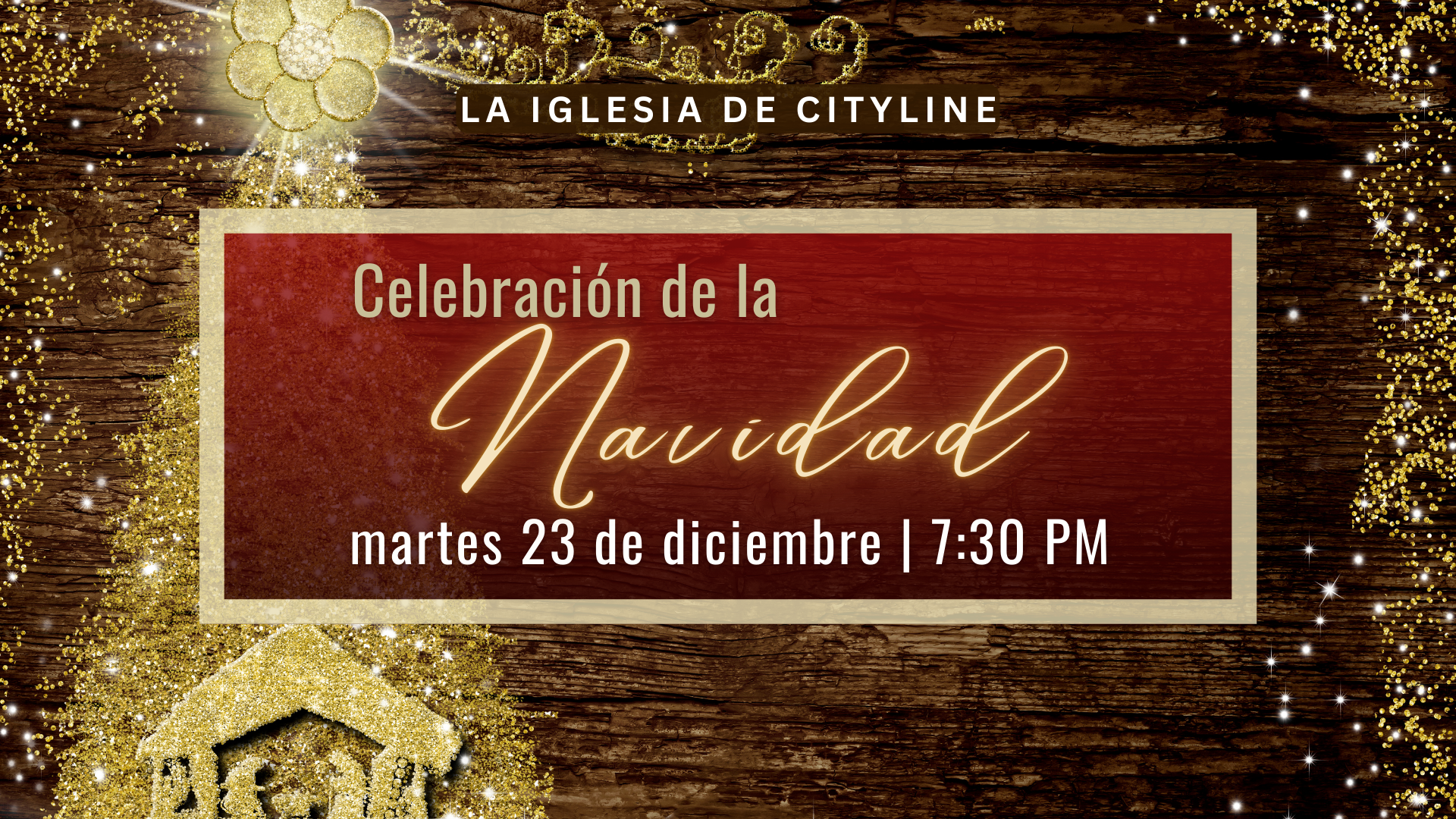 ¡Nuestro Servicio de Celebración de la Navidad será el MARTES 23 de DICIEMBRE a las 7:30pm! ¡Le invitamos con toda su familia a que nos acompañen a celebrar el nacimiento de Jesús!