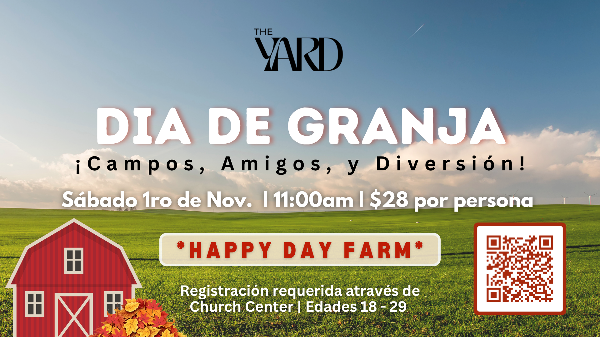 REGÍSTRATE AQUÍ – ¡Únete a todos los miembros de YARD (edades 18 a 29 años) para una salida súper divertida y un día en la granja! Nos reuniremos en Happy Day Farm el sábado 1 de noviembre para disfrutar de las festividades otoñales. ¡No te lo puedes perder!