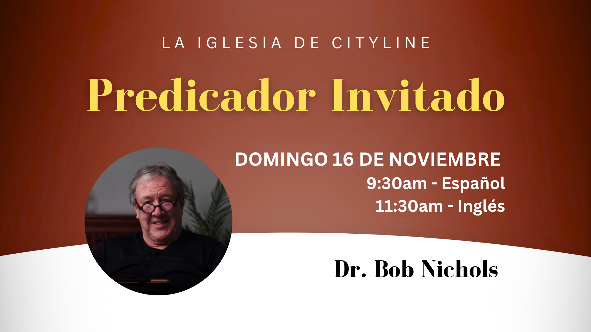 Únase a nosotros el domingo 16 de noviembre cuando el Dr. Bob Nichols estará con nosotros para compartir la Palabra de Dios. ¡Invite a alguien que necesita ser bendecido!